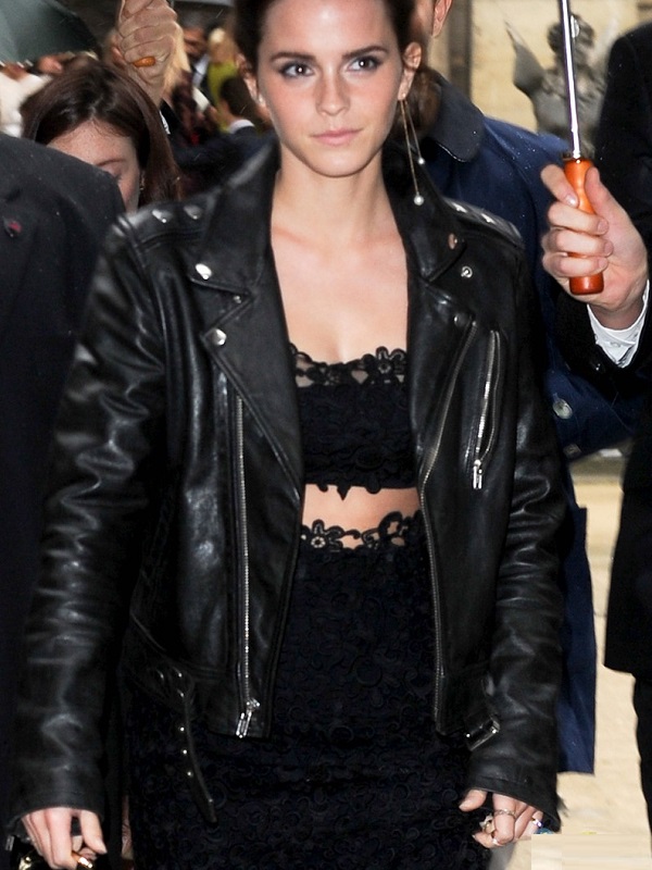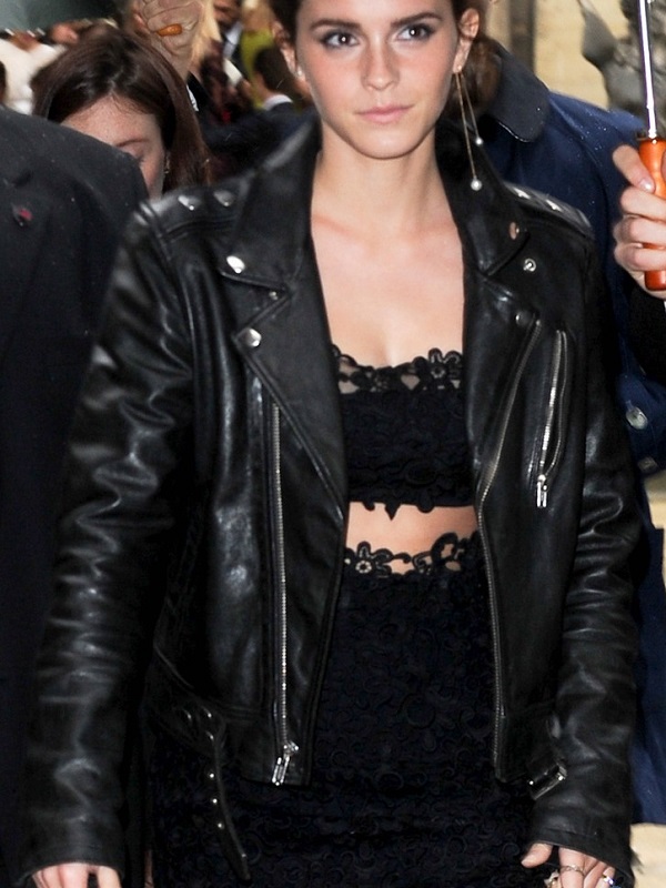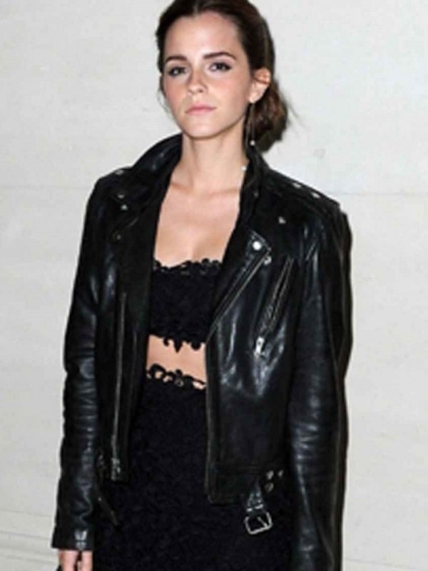 Whenever it is about leather jackets the motorbiker leather jacket is a must as no apparel industry can succeed in its business without making the kind of bike called motorbiker jacket. Emma Charlotte Duerre Watson is the full name of the English actress who is recognized as Emma Watson. The roles for which she started getting the recognition that she enjoys now are her roles in Harry Potter, and Beauty and the Beast. In one of her roles, she is seen wearing a leather jacket that attracted the attention of millions of her fans. The black-colored smart outerwear is made with both faux leather and real leather. The apparel industry has been making this jacket in both brown and black colors. It has a shirt lapel-style collar. It is lined with soft viscose material. The jacket has full-length sleeves with zipper cuffs.it has a branded zipper for closure.