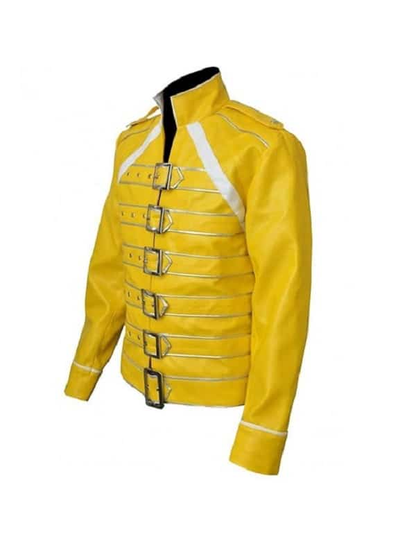Freddie Mercury is the name of a British singer, record producer, songwriter, and lead vocalist of the band of rock music named Queen. He is still considered one of the most popular and skillful lead singers in rock music history. He is famous for his four-octave range of vocals and his ostentatious stage presence. Freddie Mercury Yellow Leather Jacket for the first time became poplar when the lead vocalist of ‘Queen’ wore it during a stage performance. The Freddie Mercury Tribute Concert Jacket that the star wore in his stage tribute performance became so popular that the people of all ages and genders wanted to buy one.Celebjacket.com has manufactured the dazzling yellow jacket and has offered it for the public at affordable rates as compared to the ones sold by the big brands on unbelievably high rates that make the jacket out of reach for most of the fans.