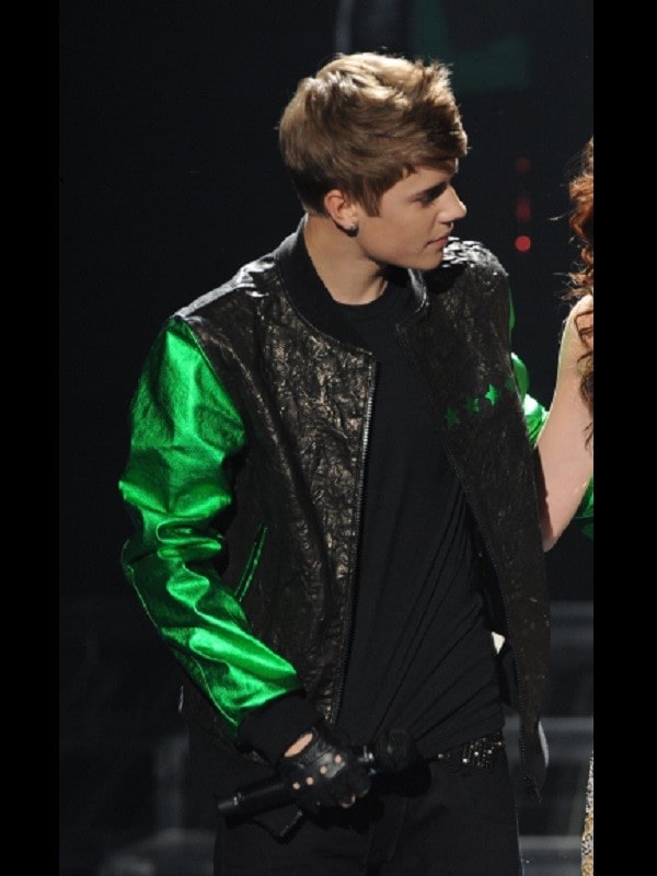 Justin Bieber is a Canadian singer who tasted fame at a very young age with his song ‘Baby Baby’ that became the street song in many countries. He participated in a reality show called The X Factor in which he wore a jacket that people liked a lot. It is made in a combination of black and green colored real leather. The smart jacket is designed with a front zipper closure and is lined with soft viscose material. The leather jacket has full-length fabric sleeves in green color. Justin Bieber The X Factor Leather Jacket has a ribbed but rounded collar. The smart-looking jacket seems to be designed especially for teenagers. The lovely jacket has two pockets at the waist and one inner pocket. As the original piece was designed for a star its cost was not affordable for the masses but now when the apparel industry has redesigned it, we can all afford to buy it.