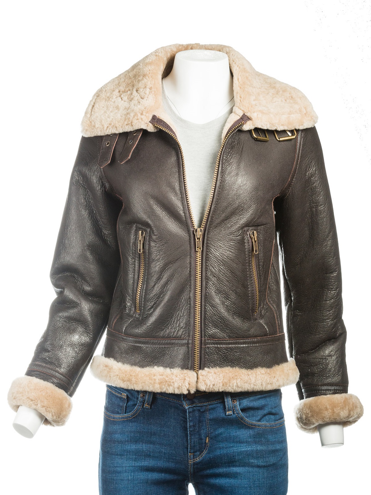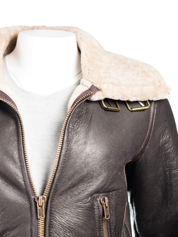 There is a misconception about the ladies’ clothing and that is that the leather jackets look good only on men, and the women who wear leather jackets have bad fashion sense. In fact, it is just the opposite and the smart and medium figure ladies look great in leather jackets. Ladies B3 Bomber Aviator Shearling Jacket is a sheepskin leather jacket. This brown-colored beauty has a wide shirt-style collar that is lined with shearling just like the rest of the garment. It has two zipper pockets at the waist. It has a branded zipper installed for closure. The pretty stylish garment has full-length sleeves with open cuffs that are embellished with the shearling used for lining. The waist of the jacket is also enhanced with the shearling material used for the lining of the jacket.