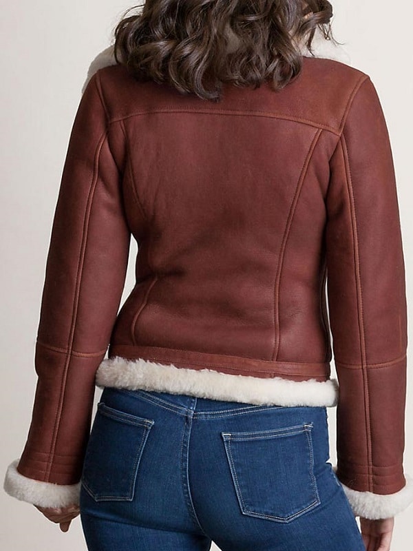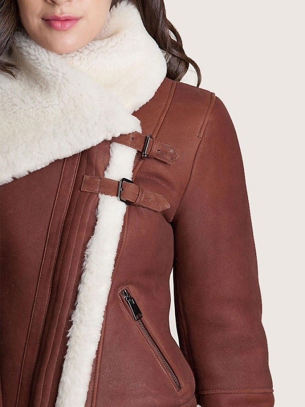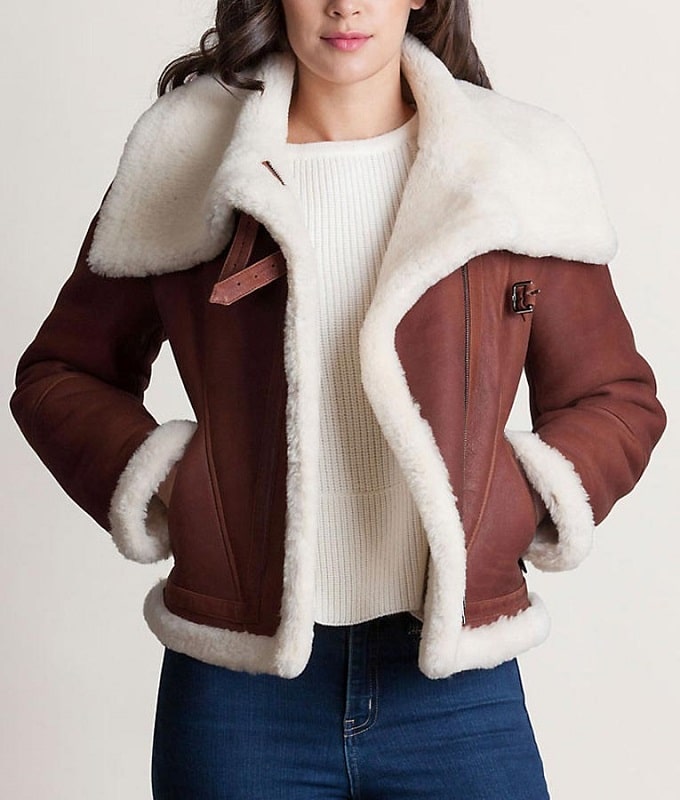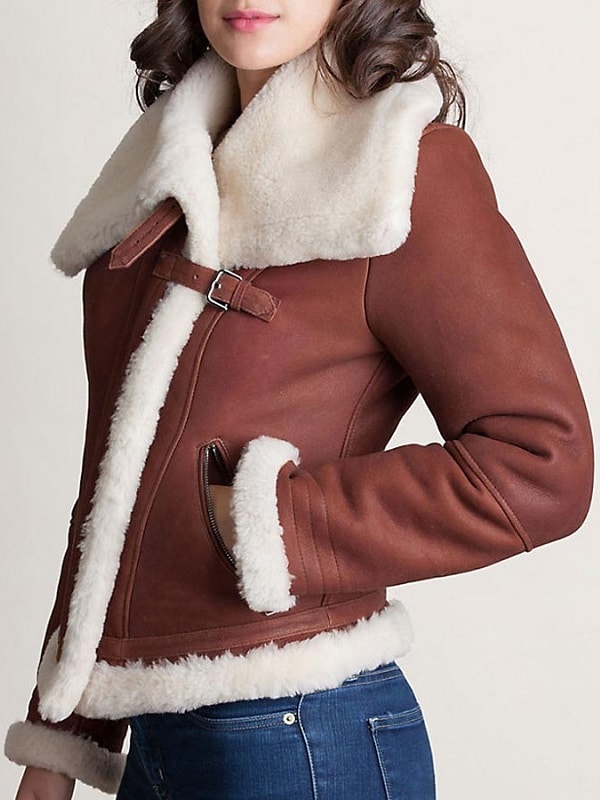 Sheepskin leather jackets are considered to be the most delicate yet warm sheepskins that are loved and praised by all her fans. It is a brown colored jacket that is made of real sheepskin leather. It has an asymmetrical zippered closure. The garment is lined with white-colored shearling. The smart attire has two zippered pockets at the waist. Ladies’ Shearling Sheepskin Leather Jacket has a lapel-style collar that is also made with shearling. It is one of the smartest ladies’ outerwear available for sale with a celeb jacket. Though the company has redesigned a number of other articles this shearling jacket is among the ones that stand out. The original version of this jacket was too pricy and only a few could afford it, but when celebjacket offered the redesigned version it was sold in bulk and the reason for this was the quality product at affordable rates.