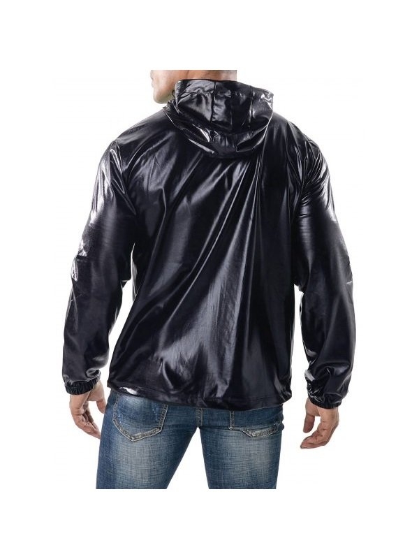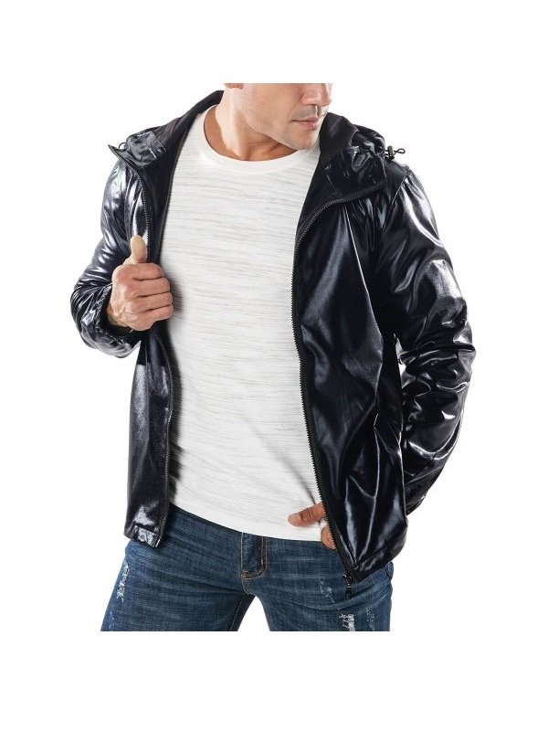 Men’s Fashion Drawstring Hoodie Leather Jacket