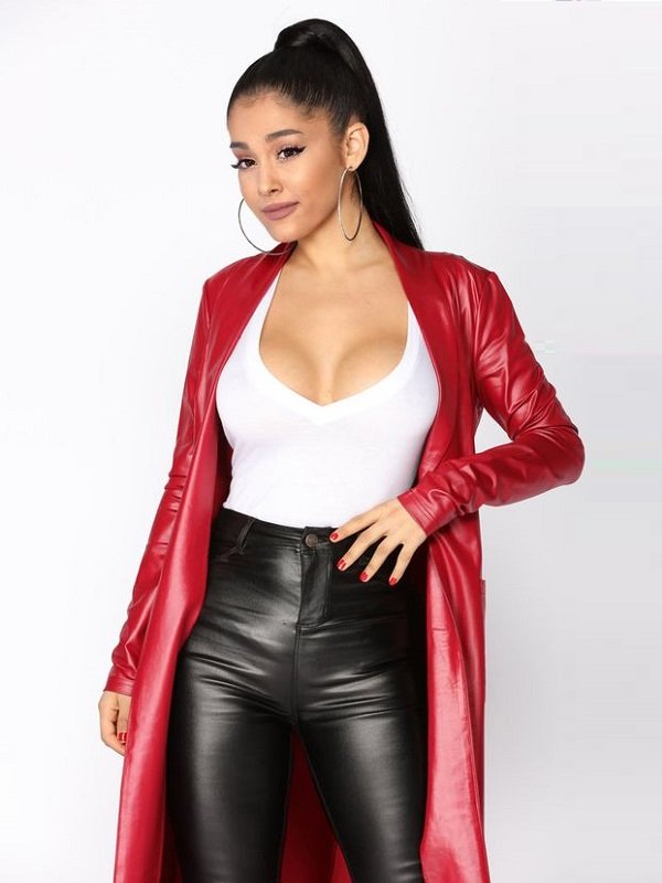 Ariana Grande is an American singer who has a huge fan following and has a great impact on the minds of the people. Thousands of Ariana Grande fans want to look like her and do what she does and wear what she wears. The Singer Ariana Grande Coat was designed by famous designers of the industry and the price of the original coat is too high for a common man to buy. Ariana Grande Red Coat is redesigned by celebjacket.com and is available at a reasonable price. It is a faux leather jacket that is red in color and is lined with soft viscose material. It has a lapel style collar and full sleeves with open cuffs. This wonderful cardigan has two pockets at the waist and inside pockets. There are a number of Ariana Grande fans have been waiting for affordable jackets which celebjacket.com has offered for sale on their online resource.