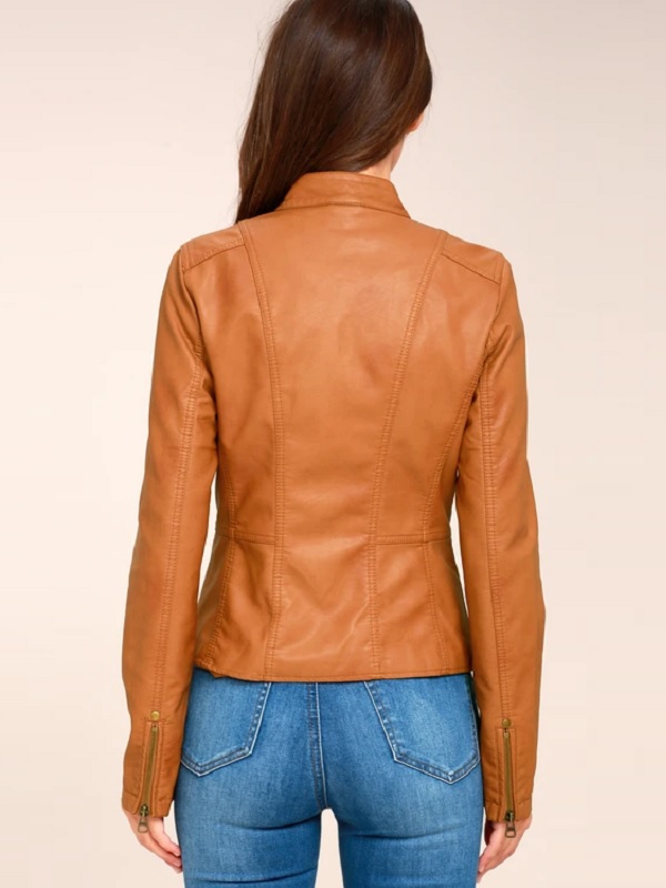 When it is about leather garments it is not only about style and finishes the durability is also a big thing that most of the customers ask for. So, no matter if it is a trendy looking real leather jacket or a fancy faux leather article in bright colors Celebjacket has experienced people who are ready to work day in and day out to meet the increasing demand for Vintage leather coats and jackets. To help people find what they have been looking for Celebjacket has manufactured a special range of tan vintage moto leather jackets. The tan vintage moto leather jacket is loved by people of all ages and both genders. This special tan vintage moto leather jacket is made of faux leather and is tan-brown in color. The snap tab color gives it a smart look. On the inside is the lining of soft viscose material. It has full sleeves with zippered cuffs and a front zipper for closure. It has five pockets in total, two zippered pockets on the chest, and two on the waist, and one inner pocket is also there. The garment looks stylish and durable at the same time.