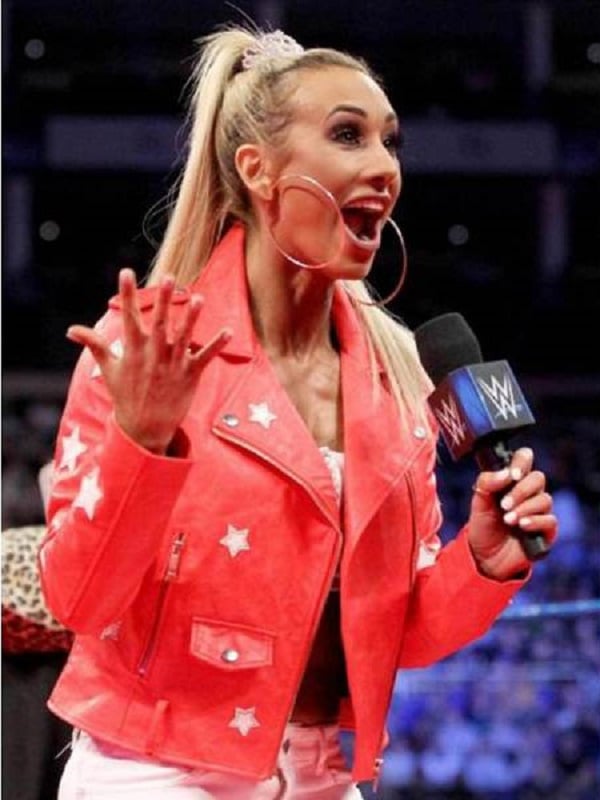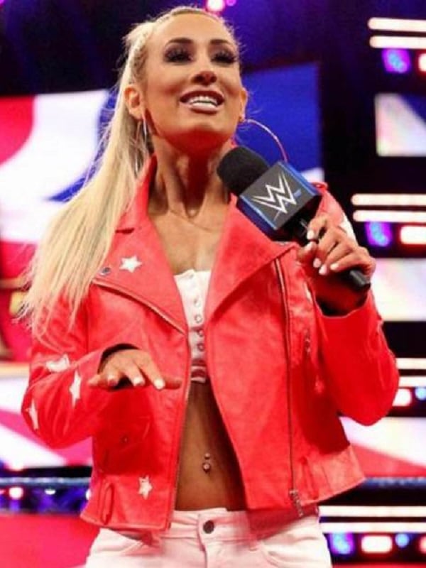 WWE American Wrestler Carmella Star Design Red Leather Jacket